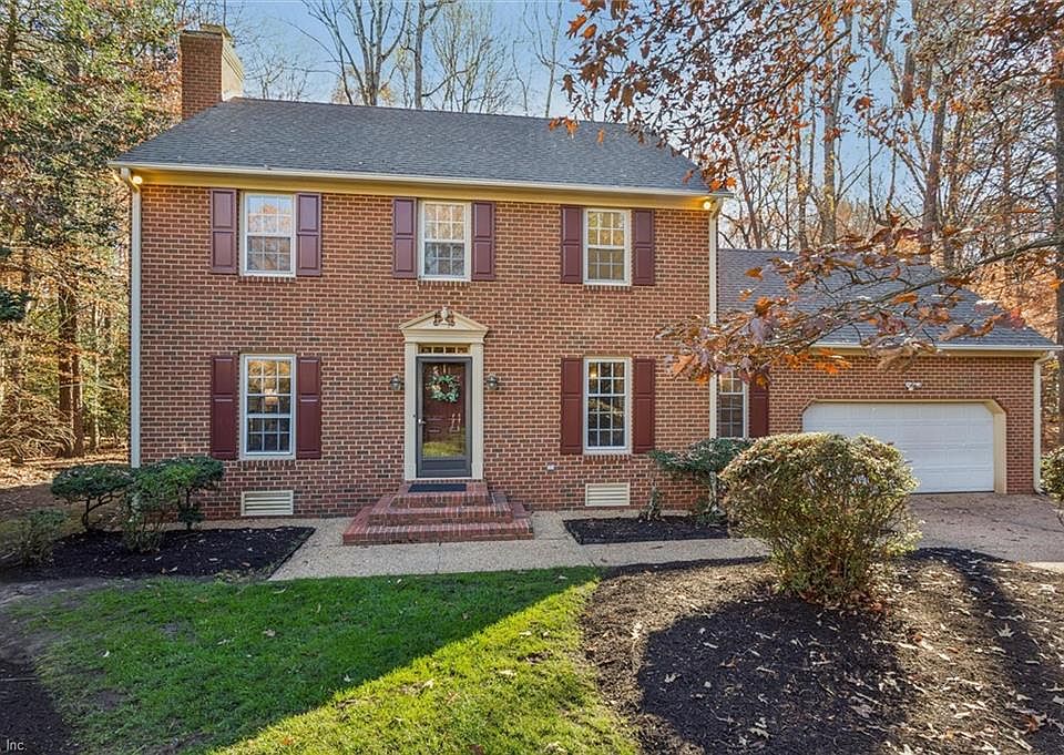 This charming custom built Colonial brick two-story home is nestled in the desirable Longhill Woods neighborhood in the City of Williamsburg. Ideally located near Aldi, a community park, recreation center, as well as restaurants & shops on Richmond Road, which offers both convenience and comfort. The main level features gleaming hardwood floors, formal dining room & spacious living room that flows seamlessly into a bright sunroom & an updated kitchen. The eat-in kitchen boasts granite counters, new stainless steel appliances, closet/pantry & hardwood floors; as well as a guest bath & laundry room conveniently located near the oversized two-car garage. Upstairs has a large primary bedroom with two closets & ensuite bath, two guest bedrooms, one with a bonus room for study/office or play area, a third bedroom & hall bath. Carpet allowance negotiable with acceptable offer. On a Cul-de-Sac that backs to woods. Low City Taxes.