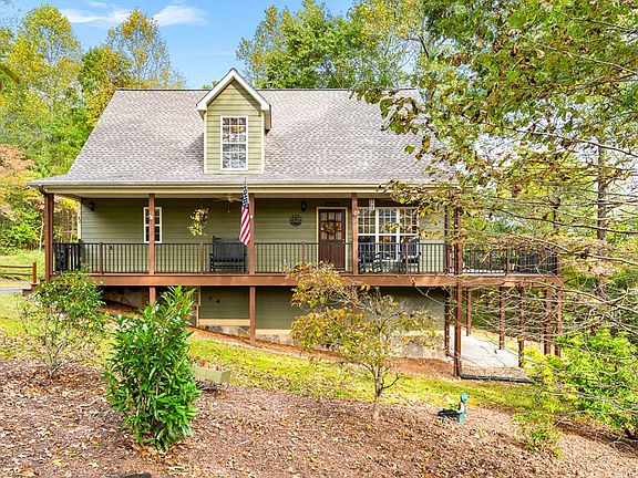 Quality-Built Cabin with Oversized Detached Garage in the North Georgia Mountains! Escape to the mountains with this immaculately kept 4-bedroom, 3.5-bath cabin perfectly situated on 1 acre of serene North Georgia beauty. Enjoy breathtaking mountain views from multiple outdoor spaces—including a covered porch, open-air deck, and screened-in deck—ideal for year-round relaxation. Step inside to an inviting open floor plan highlighted by cathedral ceilings with exposed beams, a stunning mix of wood and drywall finishes, and a stacked-stone gas log fireplace that anchors the great room. The main level features a spacious living area, a kitchen with tile backsplash and gas stove, laundry closet, 1 bedroom, and 1.5 bathrooms, along with a central vacuum system for added convenience. The upper level offers a cozy loft sitting area, second bedroom, and full bath, creating the perfect retreat. On the terrace level, you'll find two additional bedrooms, a second living area, workshop/lawn equipment storage space, and access to a concrete patio overlooking the wooded landscape. A true bonus is the detached oversized 2-car garage with a spacious unfinished upper level—ready to transform into a guest suite, studio, or home office. Whether you're seeking a full-time residence, mountain getaway, or investment property, this home combines quality craftsmanship, mountain charm, and functional design in one perfect package.
