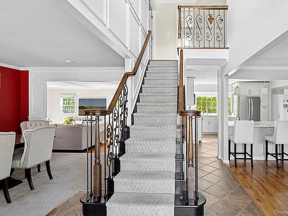 Welcome to 82 Lakeview Avenue, Rockville Centre—a mint-condition contemporary center-hall colonial offering over +3,000 sf of luxury living on a 9,750 SF lot. Fully renovated from top to bottom, this home blends modern luxury, efficiency, with every upgrade thoughtfully executed. Upon entry, the custom millwork, royal crown molding, elegant new staircase, and statement chandelier immediately set the tone—introducing a stylish yet inviting ambiance that carries throughout the home. At the heart of the first floor, the open-plan kitchen with a 7’ Carrara marble center island, premium stainless-steel appliances, custom cabinetry, extending into a windowed breakfast nook. A gracious living room with wood-burning fireplace complements the open layout, great for entertaining. Beyond the kitchen, a bright den another option for family gatherings has double french doors that conveniently open to the expansive outdoors. A beautifully converted dining room extension opens seamlessly to the living spaces creating a perfect setting for entertaining and everyday living alike. Upstairs, the primary suite impresses with a custom designed walk-in closet, spa bath and cathedral ceilings. The additional 3 bedrooms are spacious and well-appointed with generous closets, complemented by another full bathroom. The renovated finished basement offers additional recreation, bonus guest bedroom/office/playroom space, complete with a laundry room and half bathroom, as well as a new egress window. All systems have been upgraded for peace of mind—new roof, boiler, hot-water tank, ductless A/C, all-new electrical, and an upgraded gas line for the 25’ x 15’ pool and outdoor kitchen. But the magic doesn’t end inside — step out to your own private paradise. Enjoy resort-style living with a heated, lighted in-ground pool, custom outdoor kitchen with gas-fed Blaze grill, with side burner, and fire pit with seating area—perfect for entertaining or relaxing year-round. The new 32’ x 14’ deck, outdoor Sonos sound system, and dining and lounge areas create a seamless indoor-outdoor flow. The private backyard continues with more green space home to a large shed and play area that adds function and charm. While the new covered front porch and pavers, expanded and surrounded by pavers 3-car driveway complete the picture, the converted carport, now garage or private gym has been transformed with padded flooring and floor to ceiling mirrors. Location! Location! Close to Rockville Centre schools, Hempstead Lake State Park, and just moments from the vibrant village shops, restaurants and LIRR. This home offers exceptional design and livability, and turnkey perfection. Move right in—this showpiece won’t last long!