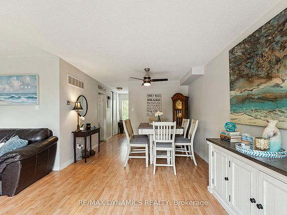 This bright townhouse features 3 bedrooms & finished walk-out basement, surrounded by nature, centrally located in a quiet & friendly enclave just a short walk to the GO station, Credit River, country trails, schools, parks & shopping, breakfast bar with built-in cabinets & granite countertop in kitchen, pantry, window, ceramic backsplash, gas stove, built-in dishwasher & double sink. Open concept living & dining with a walk-out to a small deck, car garage with access to the house via basement, private driveway & plenty of visitor parking, central air conditioning, central vacuum, finished basement walks-out to a fenced deck overlooking playground area & basketball/tennis court.