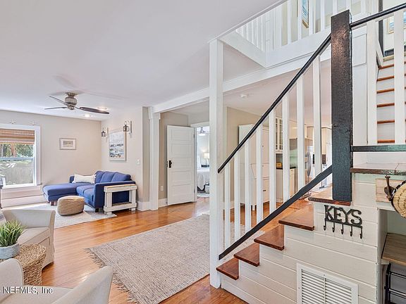 ***2.75% Assumable VA Loan Opportunity*** You can find this tastefully updated Cape Codder in the coveted, high and dry, Lighthouse Park neighborhood. From the moment you drive by or pull over to see what's just past the white fence and tropical foliage, you are instantly transported to a time where craftsmanship ruled supreme. Once inside you can't help but be taken by the welcoming architectural lines as you gaze up the staircase and over to family room back to the dining space, half bath and to the wonderfully appointed kitchen. The vintage wood flooring is your guide as you roam the first floor eventually spilling into the primary suite with its recent beautifully transformed bathroom. This spacious bedroom includes custom cabinetry and a rustic barn door encasing an ample walk in closet. Up the stairs you go to find three more bedrooms and a unique full bath all with their own personality. Leaving the home through the kitchen, down the backstairs you'll enter your own private multi tiered outdoor relaxation environments. There's a top notch split deck just off the primary suite perfect for the morning coffee or evening libation. The lower pavered area features a fire pit and more than enough room for a grill, smoker or whatever your heart desires. The second elevated deck behind the enormous carport is currently designated for dining or simply just relaxing after you've enjoyed an outdoor shower. Another absolute notable of this treasured home is the gorgeous established landscaping quite literally everywhere you look. Did we mention it also has a basement for tons of extra storage space? Its premier location is within walking or a short bike ride to everything that makes this storied community so special, including RB Hunt, one of the top elementary schools in the state, the St Aug Amphitheater, the beach, Alligator Farm and so much more. We look forward to your visit so we can answer any and all of your questions.