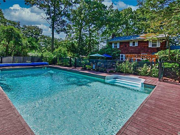 Stunning large Center Hall Colonial set back from the road on hill with a very private setting and stunning sunsets. Large eat in Kitchen with granite island. Formal dining, Living room and Den on main floor. Hardwood floors throughout the house. 2 Car attached garage. Spacious master suite and 3 additional bedrooms and bath on second floor. Full unfinished basement. Energy efficient Buteras oil heating system. New CAC condenser. Newer architectural roof. Lovely landscaped flat back yard with pool and Trex decking. Pool has a loop lock cover and a removable child safety fence. Perfect for entertaining!