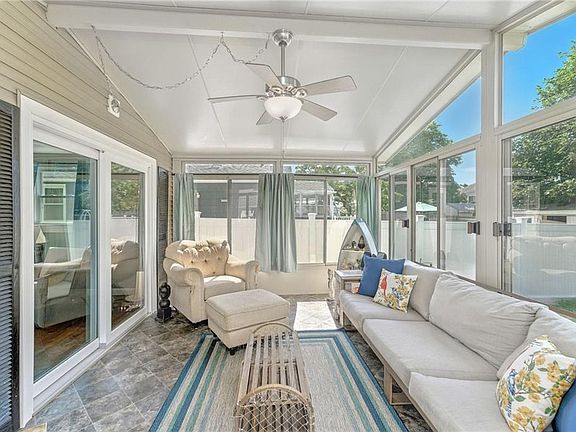 Welcome to this spacious 4-bedroom, 2.5-bathroom Colonial, ideally located near Martin Middle School, Kent Park, and Pawtucket Ave. With fully owned solar panels, enjoy energy savings while living in a home that blends classic charm with modern upgrades. The first floor features a welcoming living room with an electric fireplace, a dedicated dining room, and a well-appointed kitchen—all flowing seamlessly for everyday living or entertaining. There’s also a half bath and access to the sunroom, perfect for spring, summer, and fall enjoyment. Upstairs, you’ll find four generously sized bedrooms, including a primary suite with walk-in closet and a beautifully updated en-suite with tiled shower. One bedroom is currently used as a soundproofed home office, ideal for remote work. A second full bath with tub/shower combo serves the remaining bedrooms. The finished basement adds even more living space, with a lounge area, utility room, workshop, and storage. Additional upgrades include refinished hardwood floors, recessed lighting with dimmers, SmartStrand hypoallergenic carpet in bedrooms, and durable porcelain tile in key areas. The fully fenced backyard offers a true oasis—featuring a stamped concrete patio, black raspberry bushes, and a large shed for storage. Photos don’t do it justice—this home has incredible space and must be seen in person to be truly appreciated.