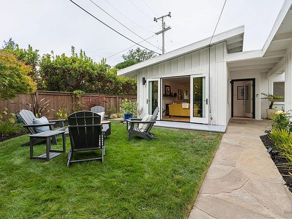 Tucked in Mill Valley's Alto Sutton neighborhood, this single-level 3BD/2BA home pairs classic character with a modern refresh. The house welcomes you through a jasmine- and wisteria-covered arbor to a level lawn, landscaped gardens, and a stone patio; all inviting spaces for dining, playing, or relaxing outdoors. Inside, wide-plank wood floors, statement lighting, and playful wallpaper set a stylish tone. The open kitchen features quartz waterfall counters, floating shelves, stainless appliances, and a sleek backsplash. A brick fireplace adds warmth to the living room, where French doors lead directly to the private yard. The primary suite includes a walk-in tile shower with a spa-like feel. The fully fenced property also offers a newly added bocce court, perfect for casual evenings with friends, and a pristine garage with plenty of storage. With access to the Mill Valley - Sausalito Bike Path, Whole Foods, the farmers market, Community Center, Horse Hill, award-winning schools, and freeway proximity all nearby, this home blends everyday convenience with easy California living.