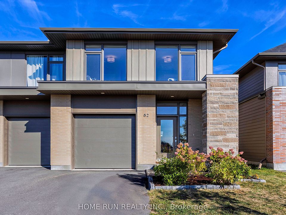 Stunning and Stylish Semi-Detached in Wateridge Village, by UNIFORM Developments, this DELORO model is the LARGEST Semi in the community, offering 2,564 sq. ft. of total living space. Only three years new, this Customized Home was originally designed with 4 bedrooms but converted into 3, making each bedroom exceptionally LARGE and SPACIOUS. Featuring 3 bedrooms, 3 bathrooms, HARDWOOD FLOORING throughout the TWO LEVELS, and Professional Landscaping. Set on a Quiet Street, the home opens with a welcoming Covered Front Porch. Inside, the bright Main Level boasts 9-ft ceilings, Pot Lights, stylish fixtures, and Hardwood Floors. The living room feels like a Single Detached Home, with Oversized floor-to-ceiling windows, premium blinds, and a Gas Fireplace with blower function. The chef-inspired kitchen showcases solid cherry wood cabinetry with black glaze finished, an oversized island with breakfast bar, Vanilla Noir quartz countertops, and a sensor touchless faucet. The adjoining dining area is ideal for family meals or entertaining. The Upper Level, Hardwood Floors continue into a spacious Centre Hall with space for a Reading Nook or Home Office. The primary suite offers his/her walk-in closet and spa-like 5-piece ensuite featuring a soaker tub, glass shower with high-end system and shower head, and EXTENDED 36-inch height Quartz Double Vanities. Two additional oversized bedrooms, a full bath, and laundry complete this level. The FINISHED Lower Level offers a large recreation room and storage. Enjoy outdoor living in the Private FULLY FENCED Backyard with a professionally installed Interlock Patio, River Stone Side Walk with Steps. Prime location: 10-minute drive to Downtown Ottawa or Take Public Transit Route 17 straight to Downtown. Also Close to Rockcliffe Park, LRT station, Hospital, CMHC, NRC, La Cité college, Colonel By Secondary School, and top private schools Ashbury College and Elmwood School. Community amenities: parks, soccer fields, tennis courts and more.