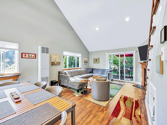 This rarely available dormered patio-style home offers 2 bedrooms, 2.5 baths, and a flexible layout designed for easy living & entertaining. The updated kitchen features stainless appliances, a built-in breakfast bar, and a pantry. The vaulted living and dining area has a natural, open flow, with a gas fireplace and custom built-ins that add warmth and extra storage. Upstairs, 2 additional bonus rooms with a half bath provides space for guests, a home office, or quiet retreat. Head outside to an expanded private patio, surrounded by mature plantings and a built-in gas fire pit . A peaceful setting for relaxing or entertaining. Additional features include updated baths, in-unit laundry, gas heat, central a/c and an on-demand hot water heater. Tucked into a quiet corner of Ocean Edge, this home offers a low-maintenance lifestyle in a beautifully landscaped setting. Ideal for weekend escapes, seasonal living, or year-round comfort.