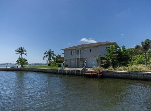 Enjoy a lifetime of perfect sunrises from the veranda of this custom waterfront home on a corner lot with 300 feet of waterfront. Captain's Cove is a small community within Sewall's Point that sits on a private canal. Boats can be docked in the canal which offers protection from the open water and the convenience of loading up for a day of fishing from the seawall, which is right outside of the 10 car garage. The garage, which is on ground level, is over 3000 square feet and can accommodate a boat, cars, a workshop and an RV. This custom home, built in 1994 has 12 foot ceilings, exquisite granite counter tops, solid wood doors, and a elevator to the garage below.