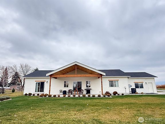 STUNNING & METICULOUS describes this NEWER 3 bd/2 ba Omak home on 1+ irrigated acre minutes from Omak. Built in 2022 w/over 2015 sf, home offers Great Room concept-spacious, open & bright. Kitchen w/all appliances, island w/bar, quartz countertops, walk-in pantry. Great room w/vaulted ceilings, slider to covered patio, new propane stove. Primary suite w/walk-in closet, slider to patio, en-suite bath w/tiled shower, rain shower, new soaking tub, double sinks. Wood lam floors thru-out, +high-end lights/fixtures, water softener. Attached 2-car heated/insulated garage. Covered back patio, sidewalks & manicured landscaping w/vineyard. Newer 1080 sf detached shop w/pellet stove, 14 & 12 ft overhead doors, loft, RV hkup. $599,000 H-3732/MLS2455229