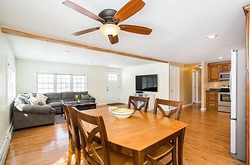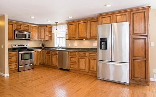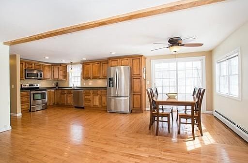 - Kit Dscrp: Dining Area, Flooring - Hardwood, Stainless Steel Appliances, Open Floor Plan, Recessed Lighting, Countertops - Upgraded, Exterior Access, Country Kitchen