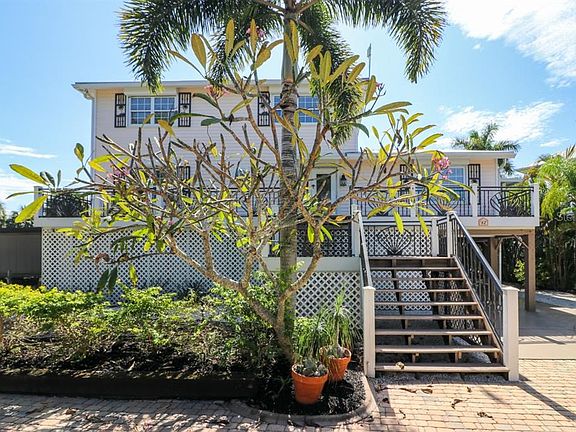 The Ultimate in bay-front living. Deepest and widest canal with NO bridges to intercoastal waterway. 7 Foot water depth at dock equipped with 50 amp service. This beautiful Palm Island three bedroom two bath Home has everything you want and more including awesome water views. Updated kitchen with granite countertops and new appliances. Caged pool, covered boat dock with 12,000 pound boat life and wave runner lift. Two bonus rooms on ground floor with full kitchen, two full baths, custom wood bar and room to sleep four making for an ideal rental. Workshop with room for your golf cart and so much more. Sold "as-is" with right to inspect