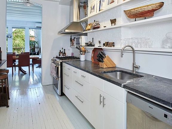 Private and turnkey with three exceptional outdoor spaces, this three-story, 3BR 19th century brick townhouse with extra convenient gated parking in the back of your lush landscaped garden is a dream come true! Renovated to an exceptionally high standard with a perfect 3 bedroom layout, a well-appointed chef's kitchen, 2 beautiful and modern white bathrooms and an additional powder room, a magical living with floor to ceiling windows overlooking the private deck, upstairs is the master suite with to die for beamed ceilings, skylights, an en-suite bathroom, huge closets and a gigantic terrace with forever views. Calling it charming is an understatement. High ceilings, oversized windows with stunning park views, exposed wooden beams, painted white floors, exposed brick and a modern facade all add to its appeal. Equally impressive is what you don't see: mechanical upgrades include a super high-efficiency boiler and recirculating hot water system, and a split AC system for all floors. The roof is brand new, and the garden level has been completely mechanically redesigned and is basically a sea worthy vessel. There's plenty of smart custom storage on every level and so many options as it's a legal 2 family house (currently used as a 1-family) with plenty of FAR available and Low Annual RE Taxes! Pioneer street is a quiet, one-way, tree-lined, late-19th century row house block (#82 is one house in from lush Coffey Park), however it's right around the corner from some of Brooklyn's best cafe's, shops, restaurants, & bars on Van Brunt Street. Redhook's picturesque waterfront park is within easy reach and Gowanus & Carroll Gardens minutes away. Residents love living in Red Hook because of the neighborhood's small town feel, quiet pretty streets, and the water breeze. They also love it for it's great food, parks, developing art scene, it's pool, the beautiful waterfront bike path and ever-increasing East River Ferries. Downtown Manhattan by car is less than 8 minutes!