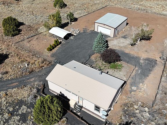 This property offers a unique blend of rural charm and practical amenities. The spacious 5 acres provide ample room for gardening, outdoor activities, or even future expansion. The large red iron garage is perfect for storing vehicles, equipment, or setting up a workshop, while the additional carport adds extra convenience. Inside, the cozy 3-bedroom, 2-bath home boasts just under 1,000 square feet of living space, The layout is functional, with an open living area that invites natural light and a warm atmosphere. The property is equipped with essential utilities, including water, septic, and electric service, With wonderful views of the surrounding landscape.