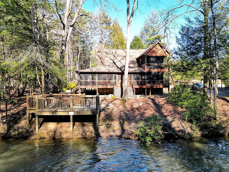 See this amazing North Georgia log home mountain retreat offering breathtaking views of the Toccoa River! Occupying 150 feet of river frontage, the 3 bed/2 bath home has been beautifully maintained with new kitchen appliances as well as a newly installed hot tub and whole house generator. This home is offered fully furnished and decorated. The living area is open concept featuring a gorgeous floor to ceiling stone fireplace. The primary bedroom boasts a private deck overlooking the river below. A loft area provides room for entertainment as well as additional sleeping. Listed as a top trout fishing destination, drop your line off the back deck overhanging the river. Enjoy surrounding nature or relax with your favorite drink in the hot tub on the wraparound porch. Only a few steps to the river, boat, kayak or tube from your back door. Enjoy local wineries, restaurants, hiking trails, recreation areas and swinging bridges within minutes. A shed, greenhouse and freestanding pavilion sized carport accommodates any storage needs. If you are looking for a primary home, vacation home or investment property, this is the property for you.