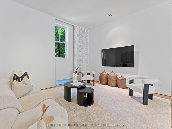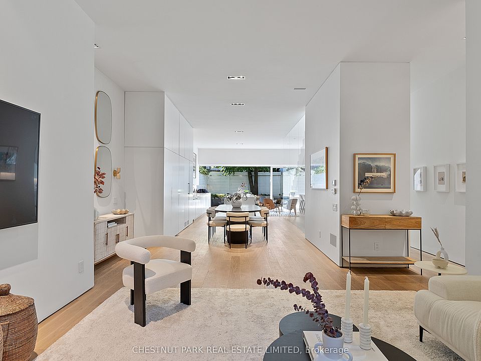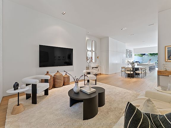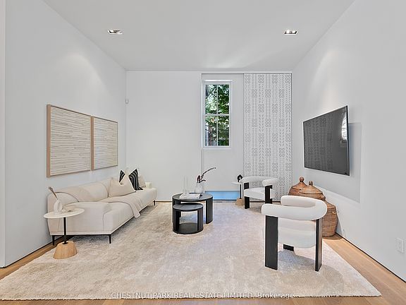 Modern architecture meets effortless luxury at 82 Robert Street, a masterfully rebuilt residence tucked behind its preserved heritage façade in one of Toronto's most coveted neighbourhoods. Completely reconstructed from the ground up, the home was dug down to create soaring ceiling heights on both the main and second floors, and extensively soundproofed along the shared neighbour wall - a testament to its quality of construction and attention to detail. Reimagined by award-winning firm GH3 under the direction of Pat Hanson, this property has been featured in leading design publications for its bold yet livable aesthetic. A full-height glass wall floods the interior with natural light and blurs the line between indoors and out, opening to a private, landscaped backyard - an ideal extension of the main living area for both family life and entertaining. Wide-plank oak floors, custom millwork, and a sculptural chef's kitchen set an elevated tone across the open-concept main level. Upstairs, generously sized bedrooms feature bespoke built-ins, including a flexible room perfect for a home office, studio, or nursery. The lower level continues the thoughtful design with a wrap-around children's workstation, spacious recreation lounge, dedicated laundry room, powder room, and a private guest suite with ensuite bath. Private parking is discreetly positioned at the rear, accessed via the laneway for effortless convenience. A rare offering where architectural pedigree, structural integrity, and functional elegance converge - 82 Robert Street is a home designed to impress and built to be lived in.