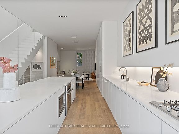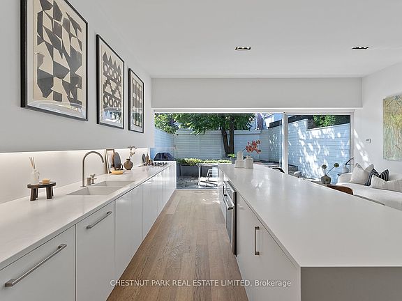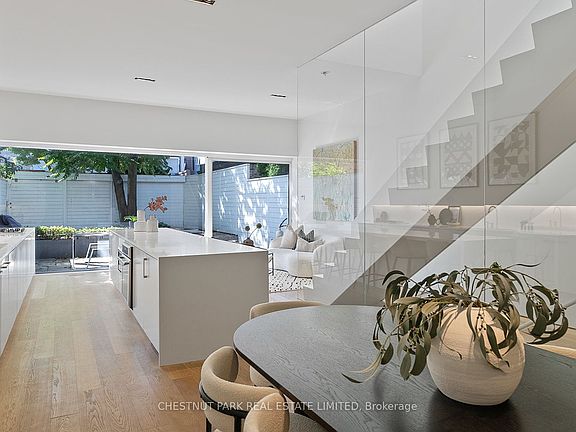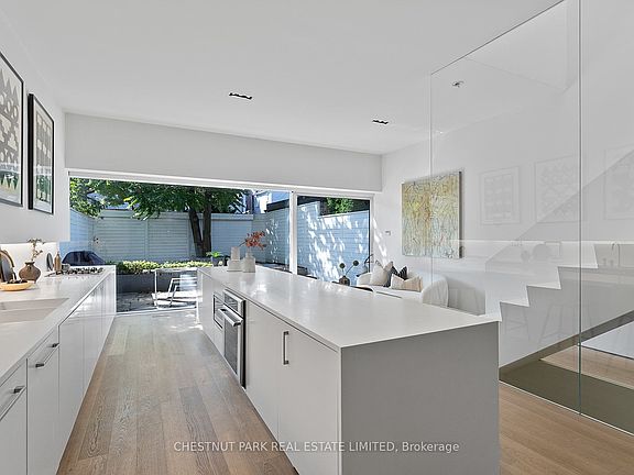 Modern architecture meets effortless luxury at 82 Robert Street, a masterfully rebuilt residence tucked behind its preserved heritage façade in one of Torontos most coveted neighbourhoods. Reimagined by award-winning firm GH3 under the direction of Pat Hanson, this home has been celebrated in leading design publications for its bold yet livable aesthetic. Soaring ceilings and a full-height glass wall flood the interior with sunlight, creating a seamless connection to the private landscaped backyard - an ideal extension of the main living space for both family life and entertaining. Wide-plank oak floors, custom millwork, and a sculptural chefs kitchen set an elevated tone across the open-concept main level. Upstairs, generously sized bedrooms are outfitted with bespoke built-ins, including a versatile room perfect for a home office, studio, or nursery. The lower level continues the thoughtful planning with a wrap-around children's workstation, spacious recreation lounge, dedicated laundry room, powder room, and a private guest suite with its own ensuite. The home features thoughtfully positioned private parking in the backyard, discreetly accessed via the laneway for effortless entry and exit. A rare offering where architectural pedigree, natural light, and functional elegance converge - 82 Robert Street is a home designed to impress and built to be lived in.