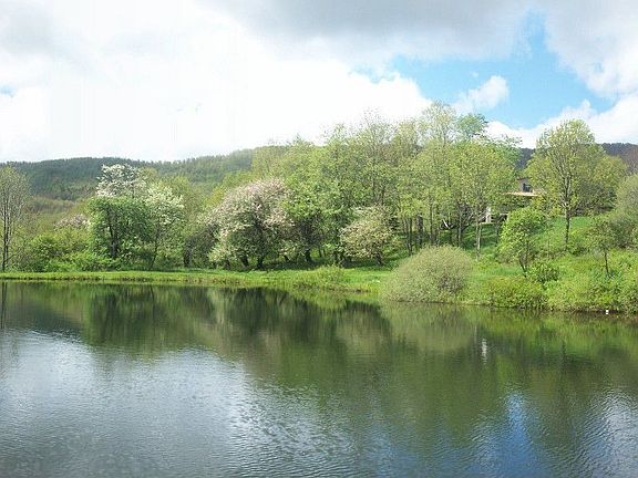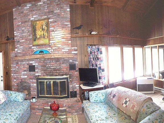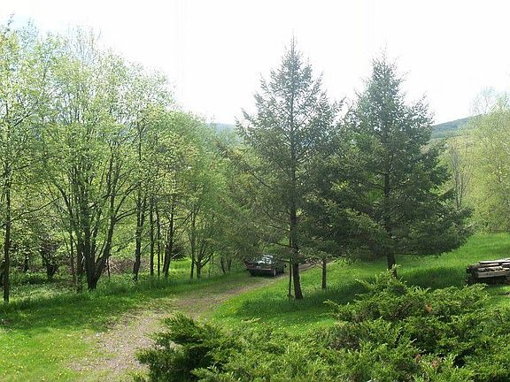 COUNTRY PURE... Welcomes you hidden away at the end of a private driveway. No need to ever leave this charismatic lodge-like 2+ BR 2BA home in a totally private 22 acre setting. If you can tear yourself away from enjoying the panoramic mountain views on the large covered rocking chair porch, or if you get tired from exploring the extensive walking paths centered around the 1/2 acre fishing/swimming pond and the babbling brook, well, then you'll be drawn to the cathedral ceilinged Great Room with brick fireplace surrounded by rustic decor with stained glass, exposed barn beams, and plenty of country accents. The open floor plan makes for easy entertaining and the 2nd floor loft area is an inviting retreat for readers and quiet study. The Master bedroom on the ground floor has its own well appointed bath, and there is another full bath for the other bedroom. All this is close to area attractions and just 2,5 hours GWB.
