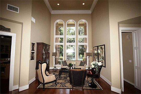 Five bedrooms (2 down) all formals, gameroom up w/balcony, true 3 car wide garage, 4.5 bath, all wood floors except tile in most baths, master bath completely updated w/travertine, private lot w/pool & outdoor entertaining area. Updated kitchen w/Thermador appliances, including double ovens, gas cooktop, built in wine chiller & refrigerator. Custom lighted cabinetry w/yards of gorgeous granite. Woodlands Schools, bike to Bush, Mitchell and TWHS. Fantastic home for entertaining family & friends.