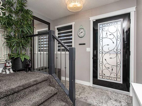 Welcome to 82 Arthur Close a beautifully upgraded home showcasing exceptional style and thoughtful design throughout. The kitchen is a true showpiece, featuring new charcoal cabinetry with glass display, under-cabinet lighting, a walk-in corner pantry with spice organizer, granite sink, pull-out drawers, and a large island with extra storage. You'll love the new stainless-steel LG convection range with air fry, GE Profile fridge, and Samsung 3-level dishwasher. The living room offers laminate flooring, up/down blinds, and a remote ceiling fan for comfort. Upstairs, the luxurious bathroom includes a heated porcelain tile floor, live-edge wood vanity, matte black fixtures, a 5' tiled shower with rain head, and a heated/lighted toilet seat. The primary bedroom impresses with a shiplap ceiling, board and batten feature wall, remote zebra blinds, "Fandelier", and custom his-and-hers closets. Two additional bedrooms are equally well-finished with custom closets and designer details. A convenient upper laundry area features built-ins, pull-out hampers, and a live-edge folding counter. The basement adds even more versatility with laminate flooring, wet bar, full bath, and a walkout with new door and side light. Outside, enjoy low-maintenance xeriscaping, a golf-green lawn area, two-tier deck with gazebo, two sheds, and RV parking. The attached single garage is insulated and heated with 220 V power. Additional updates include new shingles (4 yrs), upgraded attic insulation, 2.5 ton central air, newer water heater, humidifier, and keypad entries with high-tech front and rear cameras. Stylish, functional, and move-in ready this home offers it all!