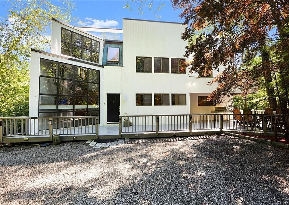 Rare opportunity to own a sophisticated Tashkovich contemporary tucked away on two private acres in picturesque Pound Ridge. Striking lines and expansive stretches of glass combine to form this architectural gem. Spacious wraparound decks with spiral staircase down to the lower level patio - ideal hone for entertaining. Enjoy the sleek kitchen, spacious living room with fireplace and sliding glass door to the deck. Adjacent dining room can accommodate twelve. Additional 1,030 sq. ft. in finished lower walkout lower level (not included in total square footage listed). The property also houses a contemporary style two-level 1,260-sq.-ft. barn/outbuilding with two stalls and storage above. A delightful dwelling in a highly desirable neighborhood just minutes to shopping, dining, parks and Metro North Train. First time on market since current owner acquired the home from Mr. Tashkovich.