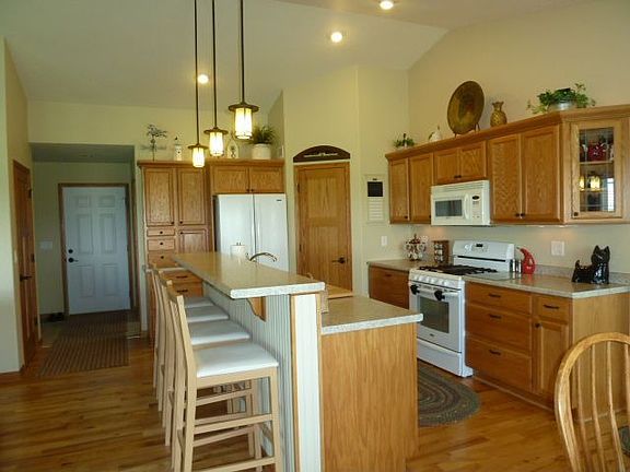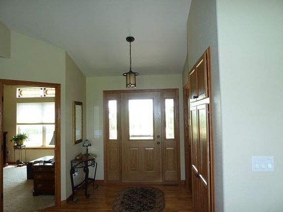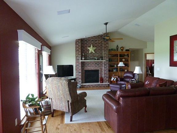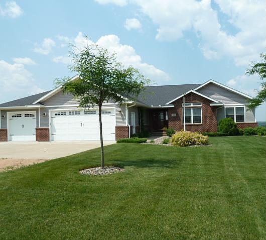 ACCEPTED OFFER. Prairie style open-concept walk-out ranch in country setting with city amenities, including recently paved asphalt street. 3 bedrooms plus office/den or 4 bedrooms. 3-1/2 baths. Great room with hardwood floors and full-height brick gas fireplace. 3 season room. Master suite. Finished lower level with rec room, bath and bedroom. 3+ stall insulated heated garage with kitchen-style cabinets, laundry tub, epoxy floor and basement access. Beautifully landscaped 1/2 acre lot. Neighborhood Description Age of neighbors varies from mid 20's to 80's. No teenagers at this time, but there are children from toddler to adolescent. We all got to know each other through the recent paving project.