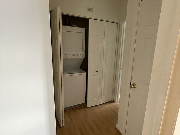 The unit has in wall ac units in the living area and in the bedroom and a stacked washer/dryer in the closet.