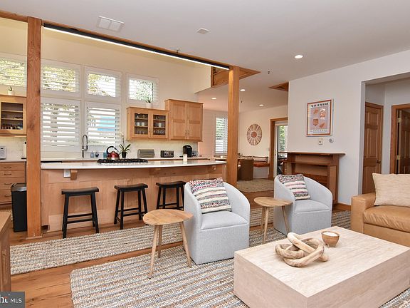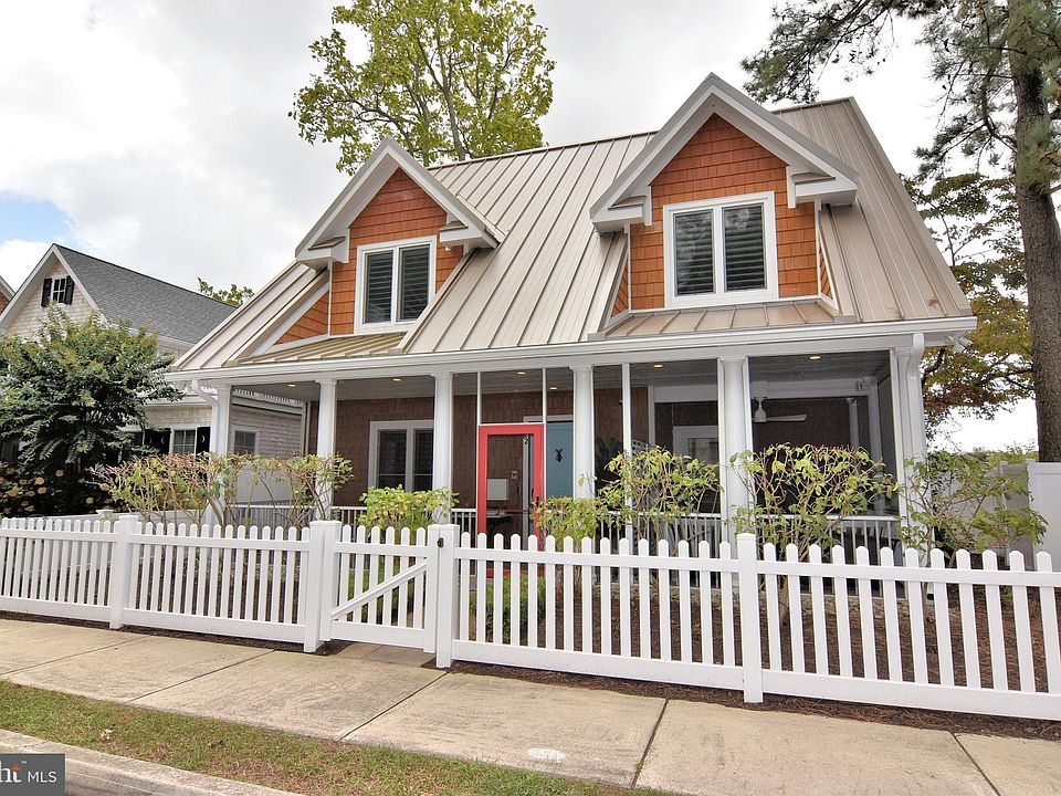 This beautifully renovated 3-bedroom, 2.5-bath home is perfectly situated in the heart of downtown Rehoboth Beach—just four blocks from the beach and boardwalk, steps from many of the area’s most popular restaurants, and only two blocks from the award-winning Rehoboth Beach Farmers Market. Remodeled in 2025, the home blends timeless coastal charm with high-end finishes and modern amenities throughout. The renovation included a complete overhaul of all three bathrooms, new quartz countertops in the kitchen, and custom shiplap detailing that adds warmth and character while preserving the home's original appeal. The thoughtfully designed layout features a spacious first-floor primary suite with a large ensuite, an open-concept kitchen and living area, two screened porches, second-floor deck, and a beautifully landscaped garden patio. For rinsing off after a beach day, enjoy the stylish outdoor shower—complete with a playful surfboard backdrop. Interior highlights include triple-paned European-style INTUS hurricane windows, radiant floor heating, and reclaimed whitewashed oak ceilings in all bedrooms and the den. Additional upgrades include solar panels, a Racine 50-year metal roof, an electric car charger, a whole-house sprinkler system, custom plantation shutters, and automatic blackout shades in the primary bedroom. Upstairs offers two spacious bedrooms, a full bathroom, a cozy sitting area, and a convenient laundry space, while a detached outbuilding provides a second laundry area, mechanical room, and generous storage for bikes and beach gear. The first floor is wheelchair accessible, ensuring ease of use for all. With its unbeatable location, thoughtful layout, and exceptional upgrades, this rare gem offers the perfect blend of charm, comfort, and modern living in downtown Rehoboth Beach.