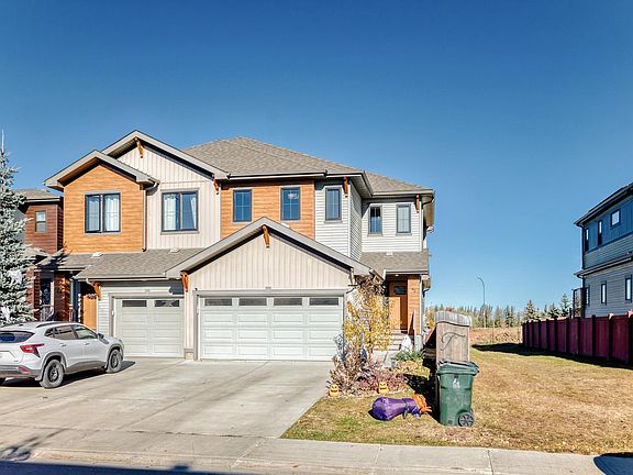 Welcome to your new home in beautiful Tonewood! This stunning half duplex offers style, space, and comfort with a double attached garage, 3 bedrooms, and 2.5 baths. Step inside to enjoy 9’ ceilings, an airy open-concept main floor, and an inviting living room with extra windows that fill the space with natural light. The modern kitchen features quartz countertops and a walk-through pantry for ultimate convenience. Upstairs, a den loft provides the perfect office or reading nook, while double doors lead to your primary suite with vaulted ceilings, a 4-piece ensuite, and a walk-in closet. You’ll also find a full laundry room, two more bedrooms, and another 4-piece bath. Located directly across from Jubilee Park’s 60 acres of trees, trails, spray park, and family events — this home is the perfect blend of luxury and lifestyle