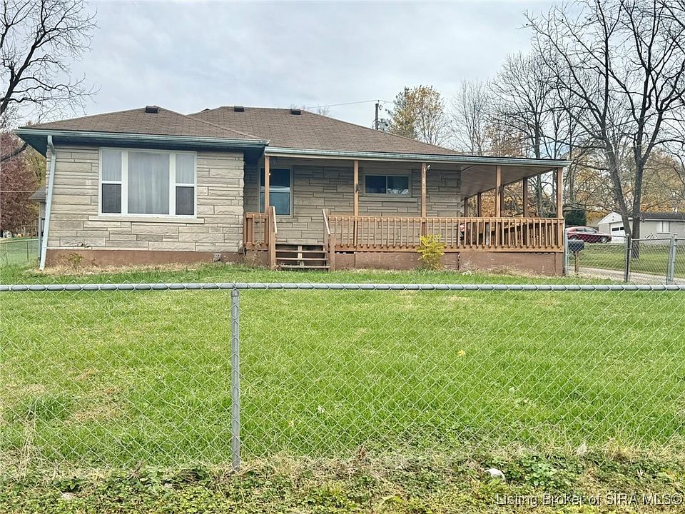 Solid built Bedford stone home with 2 bedroom, full basement, carports and garage. Fully fenced yard with covered deck. The kitchen has a double sink and all appliances including the deep freeze to remain. Laundry located in the basement and the clothes washer and dryer remain. At one time the laundry had been moved to a room on main level. The basement offers lots of extra space and has a shower. Roof just 8 years old, most windows replaced about 7 years ago. HVAC approximately 10 years old. Property to be sold "as is".