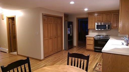 This well kept Colonial in Shirley is in need of a new family to enjoy. As you enter the home, there is hardwood floors which flow thru out the 1st floor and a large coat closet. The formal living room features a fireplace and wall to wall carpet. The dining room is large enough to accommodate the family gatherings. The eat- in- kitchen comes fully appliance with the laundry hookup. In the hallway off the kitchen you will find the first floor half bath. There is also the family room/theater room equipped with a projector for the tv. It has a double set of pocket doors, window paned & solid wood doors to help darken the room. Off the theater room is the deck with a set of sliders. The 2nd level features 3 bedrooms that are carpeted, ceiling fans and closets. There is a full bath in the hall way that has been redone with a new vanity, counter top, and toilet. The masterbedroom features carpet, walk in closet and a newly updated bathroom. The basement has a game room & workshop.