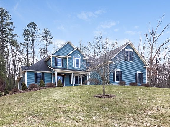 Impressive 2,540 sq. ft. contemporary home built in 2005 that backs up to Rails-To-Trails and down the street from Valley Falls Park. Private setting on 2.13 acres, set back from the road. As you enter the home you will see the tiled foyer with a custom inlaid design. A private formal DR off the foyer. The FR has a soaring ceiling with a cozy gas FP and a door leading out to a deck that steps down to a gorgeous paver patio with space for large gatherings. The eat-in-kitchen boasts granite counters, custom cherry cabinets, SS appliances, a pantry and hardwood floors. Off of the kitchen is an office, 1/2 bath and laundry rm. with double-sinks. The spacious and bright 1st floor MBR suite has tray ceilings and an impressive custom bath with heated floors, a custom-tiled shower glass enclosure and granite dual vanities. The winding staircase leads to the 2nd floor with 2 add'l ample bedrooms, a 2nd full bath and a spacious bonus room. There is a large unfinished walkout basement for add'l storage. An oversized 3-car garage completes the home. The landscaping is serene and private. You get that feeling of luxury as you drive up the meandering driveway. There is a "secret" treed path in the backyard that leads to the Rail Trail. Add'l features are central A/C and central vacuum. This home states as a 3-BR, but the office and bonus room both have closets and can be utilized as add'l bedrooms. Original owners. You have to see this beautiful home to appreciate all that it offers.