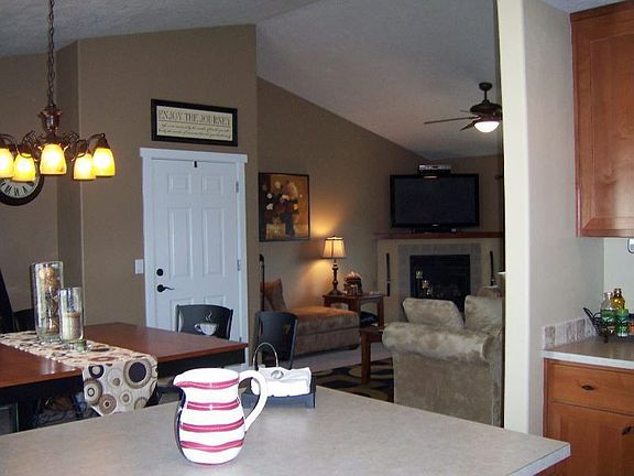 Beautiful quiet gated community, close to park & shopping. 9' ceilings. Vaulted LR & Master w/ ceiling fans. Cherry-stained alder cabinets & black appliances in kitchen. Double sink in large master bath. Custom paint thruout. Private entrance, sound barrier between floors. Generous storage. Garage door opener. Cat 5 wired. Mountain views from deck. Clubhouse with pool table, tv, kitchen. HOA covers exterior water & maintenance, landscaping, garbage. Pets allowed.