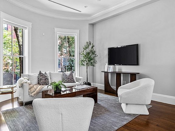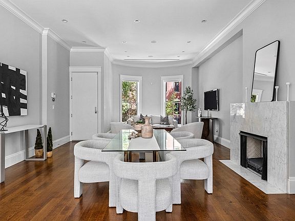 Highly desirable parlor and above duplex (only one flight from street) on a leafy street in South End. Completely renovated in 2017 with only one owner, this 3 bedroom, 2.5 bath home offers almost 1,800 sqft on two floors with high ceilings, tall windows, and wonderful proportions throughout. Spacious living and dining area features a marble-wrapped gas FP while a suburban-sized kitchen offers Wolf and SubZero appliances, stone counters, oversized island, and tons of storage. A breakfast space or office area is wrapped with windows and opens onto the deck. 3 bedrooms are upstairs, including the king-sized primary suite with sleek bathroom and a large walk-in closet, plus a hall bath. Parking for 1 car (tandem), central AC, laundry, motorized blinds, and hwd floors complete this property. 100% owner occupied, 3 unit association. Located in the coveted South End neighborhood, this home is close to parks and locally-owned shops and restaurants like Flour, The Shawmut Inn, Toro, and more.