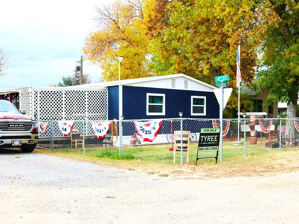 Located in a quiet, established neighborhood, this property offers tremendous value for buyers needing space. The home has a sharp navy blue exterior and is situated on a large corner lot with mature trees and a fenced yard.