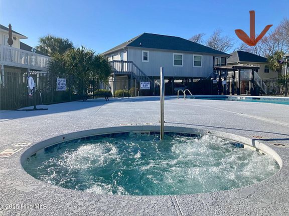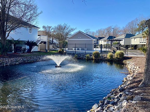 Experience coastal living in this hidden gem all tucked away just a few blocks to the sandy beaches in North Myrtle Beach, SC.It is within walking distance or a short golf cart ride to the beach and easy access to Hwy 17. Willow Creek Subdivision offers community fenced in swimming pool, hot tub, beautiful scenery of turtle ponds and fountains.The home lawn shows beautifully designed new rock beds allowing low maintenance landscaping with palms. The front deck overlooks the pool while the backyard overlooks the community creek. Nice back patio area with pavers, perfect for entertaining. New roof installed 2025; HVAC 2024. Inside the home has a nice two bedroom two bath floor plan. New kitchen backsplash, upgraded window fixtures/blinds, appliances and a set of new Samsung washer and dryer set conveys with the property. Freshly painted bedrooms and decking, new flooring installed 2023 and new sink and tub hardware in both bathrooms. Storage areas underneath raised beach house. It is a lovely home, great location, lot of restaurants, activities, shopping, medical, close by. Approximately 15 miles to Myrtle Beach area. Looking for a primary or secondary home this could be your next getaway.
