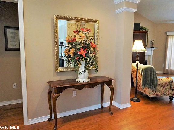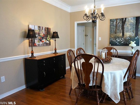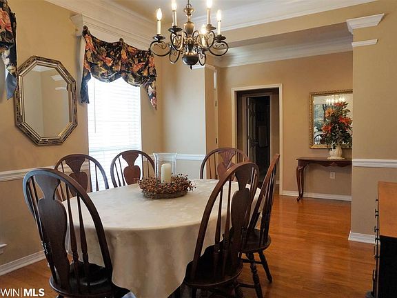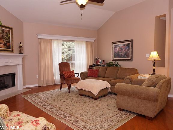 Beautiful custom-built one-of-a-kind floorplan with many updates including hardwood flooring, granite counters, screened porch. This one-story 3/2 has a large central greatroom with a cozy gas log fireplace, hardwood floors and high ceilings. The greatroom is open to kitchen with granite counters and breakfast area that overlooks the private backyard. Formal dining, with hardwood flooring, is off the foyer and ready for those holiday occasions. At rear of house is a cozy bonus area for office or den. Master has adjoining bath with double sinks, garden tub, separate shower, water closet and walk-in closet. This split bedroom plan has new carpet in all bedrooms. Through the screened porch is a covered porch for outdoor cooking. Mature yard is fenced. Enjoy all that Spanish Fort Estates (built atop a Civil War battlefield) offers: Voluntary dues of $25/year, extreme convenience to I-10 and Causeway for commuters to Mobile & beyond, quick access to schools, parks, shopping, restaurants. This is a highly walkable neighborhood.