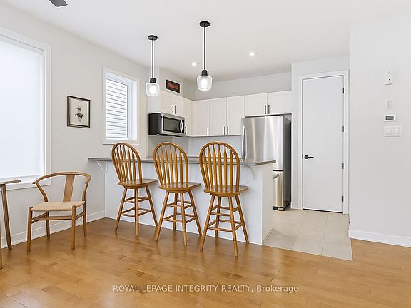 Welcome to this stunning 2021 Cavan-built townhome, offering modern comfort, thoughtful design, and a rare attached two-car garage. With three great-sized bedrooms, two-and-a-half bathrooms, and a fully finished basement, this home delivers exceptional value and flexibility, whatever your lifestyle may be. Upstairs, the primary bedroom impresses with a walk-in closet and a zen ensuite featuring a double-sink vanity and walk-in shower. The upper level also includes a spacious den, ideal for a home office, cozy reading nook, or secondary living area. Step directly from the den onto your private upper deck, perfect for relaxing in the sun or entertaining. The main floor offers a bright, open-concept layout with a functional kitchen and convenient garage access through the pantry area, making daily living easy - especially during winter months (you'll never have to clean snow off your car again). With the driveway located at the back, the front yard feels open and inviting, providing excellent curb appeal and outdoor space. The finished basement offers additional versatility as a large family room, playroom, or a vast storage area. Located in the welcoming town of Richmond, this home is just minutes from everyday amenities, schools, parks, and provides easy access to Highway 416 for an easy commute into downtown Ottawa.
