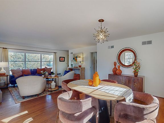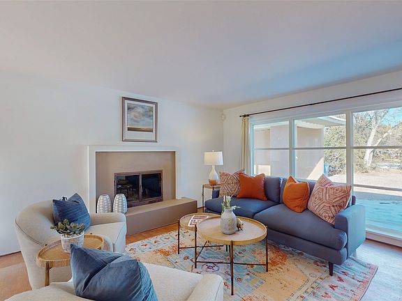 moments from the Historic Downtown/Plaza! Custom fireplace, hardwood floors, beautiful meadow-like backyard. Close-in yet private, mature pinons, much-loved. The home has a 3rd bedroom (no closet), an additional studio/media/office area, deck and central HVAC. This is an excellent development opportunity with plenty of space for additions/expansion or an ADU.