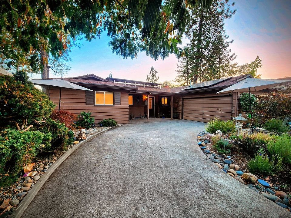 Tastfully updated residence giving. Owned solar is included in the rent, keeping electricity costs at $0 (tenant only pays if PG&E adds charges). Zen tree house meets modern-retro bungalow! Perched in the hills over Downtown Placerville. Enjoy two sunrooms, natural light , pretty views, twinkling night lights, a spacious open floorplan, an amazing garden space available to use! Close to shops, dining, and wine tasting, this home offers comfort, efficiency, and convenience.