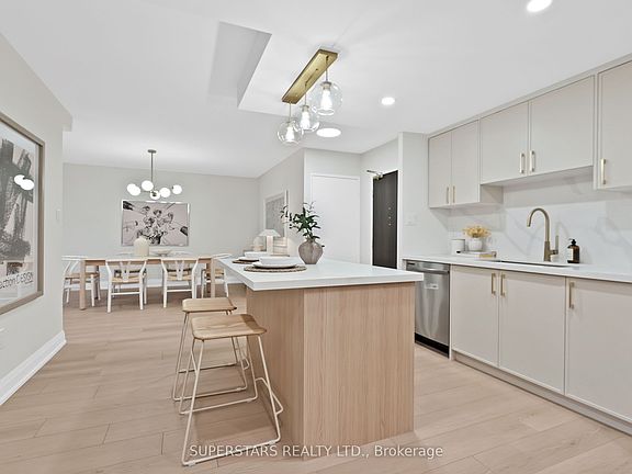 WOW! A Downsizer's Delight Boasting Almost 1,300 SQFT! No Need To Sacrifice Size Or Style - This Home Offers The Best Of Both Worlds! Move-In Ready, Completely Renovated With Condo Corporation Approval! Ready To Impress With Premium Upgrades & Quality Workmanship! This Bright & Airy 3 Bedroom, 2 Full Bathroom Unit Features Light Oak Coloured 7.5" Wide Planked Flooring, A Stunning Kitchen Straight-Out-Of-A-Magazine With Quartz Counters, Backsplash, New S/S Appliances, Trendy Slim-Styled Shaker Cabinets With Brushed Gold Hardware, Custom Sized Large Centre Island For Additional Seating, A Large Pantry (As Big As A Den!) For Ample Storage Space. If You Love To Entertain, You're Going To Love Your Massive Living Room And Formal Dining Room With Pot Lights & Stylish Light Fixtures - Host All Your Holiday Family Gatherings Here! The Primary Bedroom Comes With A Luxurious 3PC Ensuite & Large Walk-In Closet, Whilst The Other Two Bedrooms Are Generously Sized With B/I Closets, Large Windows And The Shared 4PC Bathroom Is Modern Like A Hotel Bathroom! New 100Amp Electrical Panel! All Inclusive Maintenance Fees (Hydro, Heat, Water, AC, Rogers Cable + High Speed Unlimited Internet). This Condo Has ALL The Amenities For You To Enjoy: Indoor/Outdoor Pool, Sauna, Newly Renovated Rec Center with Gym, Ping Pong, Squash Court, Golf Simulator, Party Room, Outdoor Playground, Basketball Court, Tennis Court. Next to Top Rated Schools, Centennial Park, TTC at Doorstep, Minutes to HWY 427, 401, QEW, Airport, Malls, Hops, Golf & More! BBQs Allowed On Balcony. Just Move-In & Enjoy!