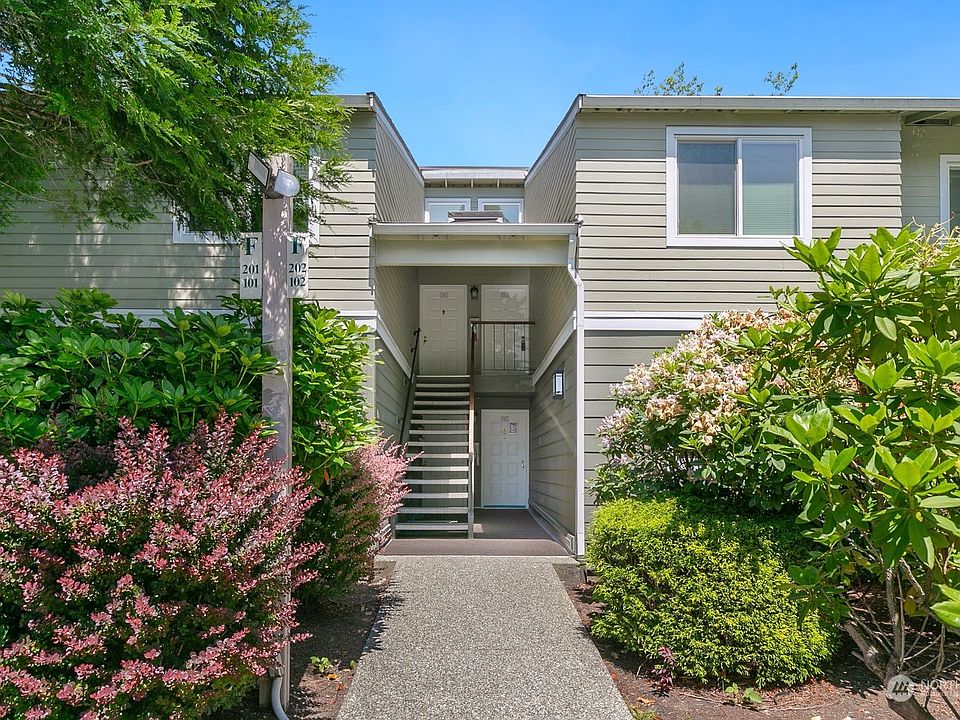 Discover your dream home at the Village by the Lake! This stunning 3-bedroom, 2-bath condo has been lovingly maintained by its original owner. Located on the ground floor, this corner unit boasts two inviting patios. Enjoy the fresh feel of new carpet and paint, plus a brand-new stove and microwave. With a spacious layout and a master bedroom featuring a walk-in closet, comfort and style are at your fingertips. Perfectly situated near I-5, Boeing, shopping, and restaurants. The community offers an outdoor pool, sports court, clubhouse, tennis court, sauna, and scenic trails. Don't miss out on this exceptional opportunity!