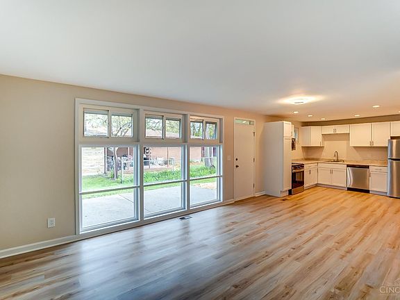 Enjoy one-level living in this stunningly renovated brick ranch, nestled in the back of a quiet neighborhood in Forest Park. An inviting front terrace greets you while a picture window Living Room welcomes you in - open to Kitchen and Dining with wall of windows and walkout to a spacious patio, perfect for entertaining! Four generous bedrooms lie at the back of the home with a designed en-suite & hall bath to boot! New: floors, paint, HVAC, kitchen w/ stainless steel appliances. Enjoy Winton Woods Park minutes away! 1769 Square Feet.