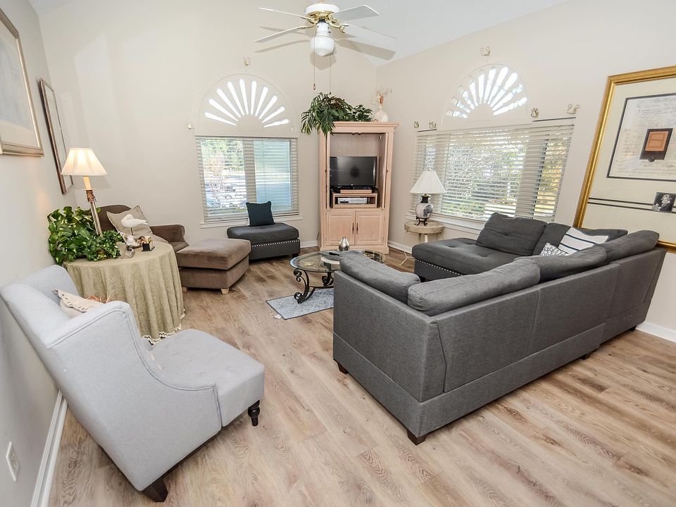 Welcome into this inviting three-bedroom, three-bathroom Myrtle Beach vacation rental located at Kingston Plantation. As the door opens into Canterbury Court 6-E, you will be met with a large foyer area that divides the bedroom spaces from the communal area. The ornate and comfortable living room is to the right of the foyer. Connect with others in the spacious living room with a flat-screen television that has DVD accessibility. There is a sleeper sofa available in the living room that can fit up to two guests.