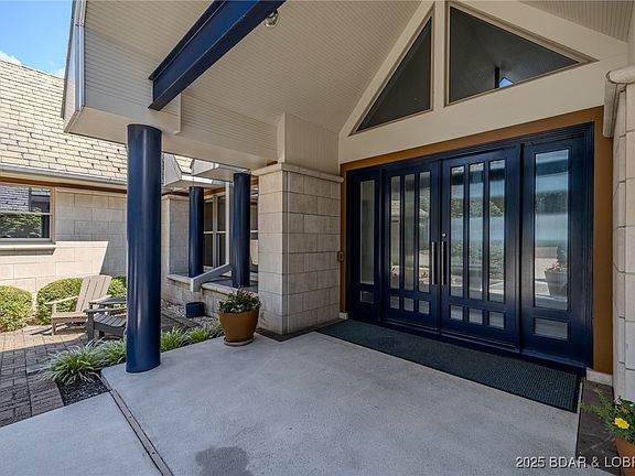 Discover this stunning contemporary masterpiece perched on one of the tallest bluffs at Lake of the Ozarks, situated on an oversized lot next to a common area green belt adding to privacy. Perfectly situated within a secure, gated community, this home offers unparalleled inclusionary views that stretch for miles, making every sunrise and sunset a breathtaking experience. This spacious and impeccably designed residence features five generous bedrooms and five and a half spa-like bathrooms, providing plenty of space for family and guests. The three-car, heated & cooled garage with designer epoxy finished flooring offers convenience, while the meticulously landscaped grounds add to the home's curb appeal. Enjoy a seamless indoor-outdoor lifestyle with a sparkling lap pool, and a 14 x 32 boat slip—ideal for day boating and water adventures. Modern comforts include a whole-house generator, reverse osmosis water system, security alarm system, and contemporary finishes throughout. Whether entertaining guests or relaxing in solitude, this lakeside haven delivers tranquility, luxury, and awe-inspiring vistas at every turn.