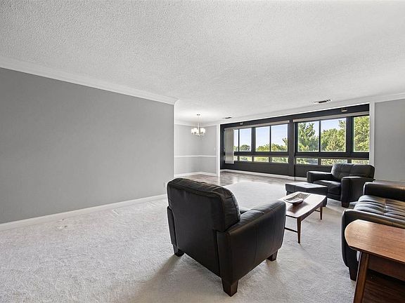 You will be blown away by the stunning views in this 3BR 2 BA North Liberty condo overlooking the #1 & #2 fairways of Quail Creek Golf Course! Architecturally significant, this Prairie-style building was constructed from Stone City stone, steel & concrete & is a work of art itself. Unit 4E offers a wide open floor plan with a huge living room, convenient galley kitchen just waiting for your special touch, and an expansive wall of windows letting natural light pour into every room. The primary suite, also boasting a wall of windows and a wall of closets, has a private bath. Updates include some new paint, LVP flooring in the entry, kitchen, dining & bonus room, newer in-unit washer and dryer, new windows and a newer HVAC system. The amenities this building offers are endless with a heated, in-ground pool, hot tub, locker rooms w/ 2 saunas, elevator, secured entrance, a 24 hour live in manager, community room, guest suite for overflow guests, heated parking garage (2 spaces included), a private, lockable storage unit, 2 community gardens, a mail room w/ a printer & shredder for residents, and there's even a car wash! Association fees also include electric, heating, cooling, water, sewer, snow removal, lawn care, garbage/recycling, internet, cable, and a live-in building manager. 2 new roofs in 2024 (building and garage).