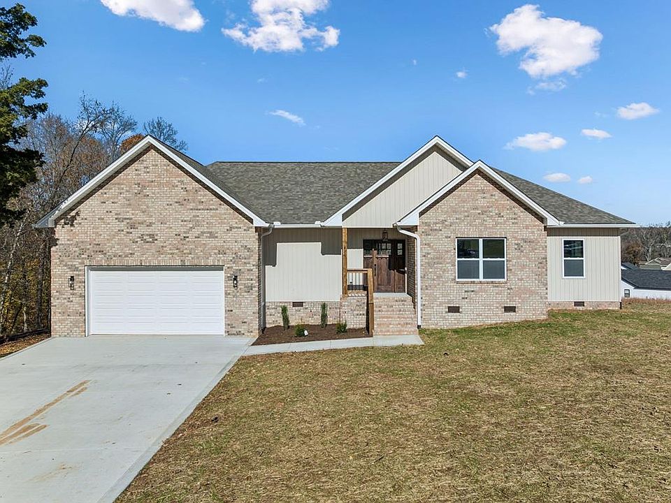 Beautiful new construction on a large corner lot in a well-established neighborhood—just minutes from local conveniences! Save thousands with the preferred lender incentive. This home blends charm, comfort, and modern finishes, including stainless appliances (fridge included), quartz countertops, and waterproof laminate flooring. Custom touches include shiplap accents, tongue & groove ceilings, built-ins, an office, oversized laundry room, and a mudroom/drop zone. The spacious living area features a warm brick fireplace, and the open kitchen flows seamlessly into the living and dining areas. The primary suite offers a relaxing retreat with a freestanding tub, tiled shower, and generous walk-in closet. Enjoy the peaceful sound of a babbling creek from the backyard and the convenience of a 2-car garage. Modern finishes, stylish amenities, and a prime location—just 15 minutes from Tennessee Tech University!