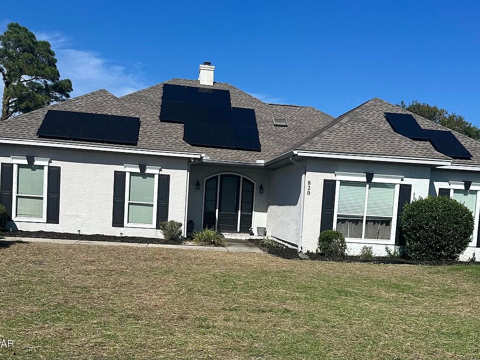 Short Sale, has 39 solar panels, last elec bill was $113.00 . Roof and Windows are 7 years old replaced after hurricane Michael. Cove lighting in dining room. Living room and master has vaulted ceilings. 2 '' wood blinds included. Ref oven and vent hood 3 years old. Golf cart garage with very large attic.