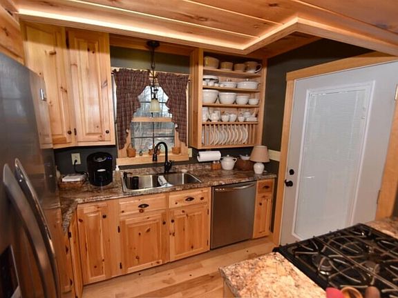 This beautiful custom built log cabin style home and stunning views will remind you of Gatlinburg. Home features all wood interior, cozy gas fireplace, custom tile shower. and so much more. Enjoy the stunning views from the covered wrap around porch while listening to the soothing breeze flow through the trees. It's an amazing, calm, peaceful setting where you can get away from it all.