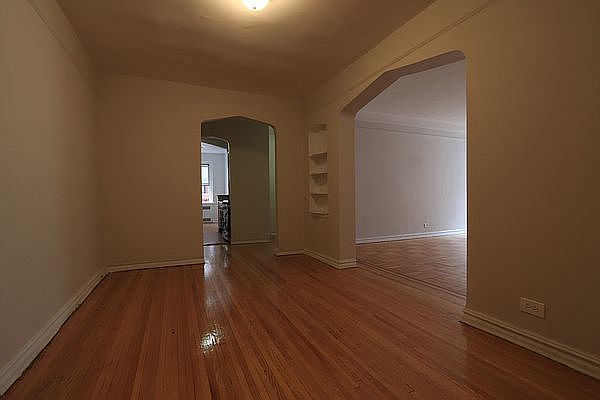 This two bedroom apartment is located on the 2nd floor of an elevator/laundry building. The building is well kept. Rent-stabilized and includes heat and hot water. Walk into the foyer space which highlights a walk-in closet. All rooms lead off of this massive 14 x 10 foyer which many have used as a dinning room. The foyer has pre-war charm with built-ins . The living room is large and allows plenty of sunlight through. The building has brand new electric with dedicated AC lines. Powerful A/Cs to cool the space are welcomed. The kitchen is deep and has counterspace on both ends. The kitchen comes equipped with a fridge, stove, and microwave. The counter top and backsplash are single marble. This traditional kitchen is welcoming to any chef and has a eat-in space at the back. the bedrooms side by side each have a closet. Bedrooms are a good size. The bathroom was fully renovated tiles from floor to ceiling. Bathroom is large and well made. Right outside is a large closet where you will find washer/dryer hookups. This unit is a corner apartment, gets excellent sunlight and has been recently remodeled.