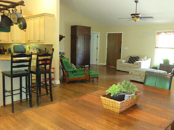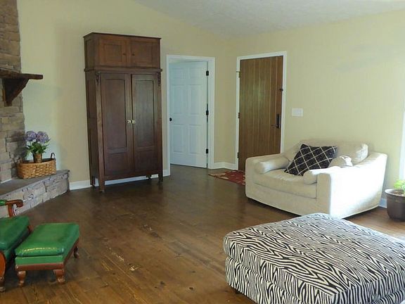 Awesome one level living ranch and 2 acres. Handicap accessible (3 foot doors). Heart pine flooring from Canada. Open great room with cathedral ceiling and stacked stone fireplace. Kitchen has custom cabinetry, granite counter tops, island/bar. Large master bedroom suite with walk in closet, double bowl vanity. 2 Bedrooms were combined to make one large family bedroom with built in bunk beds (this could be converted back to 2 family bedrooms very easily, please see pictures online). Laundry on entry level. Lower level potential in-law suite. Huge rec/family room with kitchen/wet bar. Bedroom and spacious bath. Energy efficient with zip tie thermal barrier, 16 Seer Trane HVAC. 7x44 covered front porch, 10x20 rear deck. Also dry patio/deck off lower level. Septic pumped in 2016.