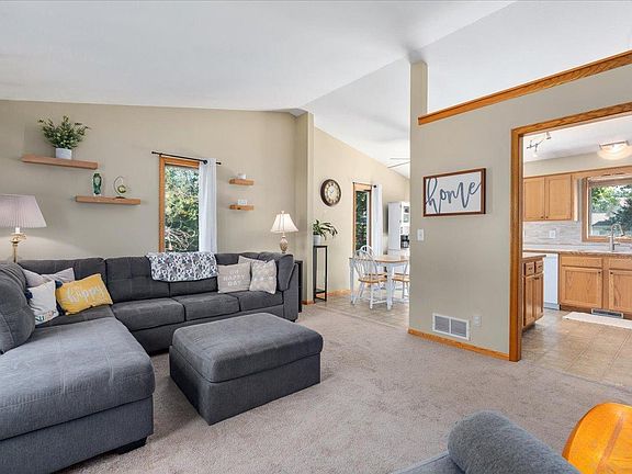 Welcome to your new home nestled on a quiet cul de sac, conveniently located near parks, beaches and downtown Hudson. This 3BD/2BA home offers an open concept main level living area with tall ceiling. This is met with large windows, which give you an abundance of natural lighting throughout the home. Spacious bedrooms. Cozy lower level family room with fire place, a perfect space to enjoy WI winters. (Lower level large TV and mount stay with the home!) Large deck , beautiful trees and landscape, fenced in backyard with nearly .5 acres, creates a perfect space for entertaining. New Roof, 2023. Driveway recoated 7/16/24. Come check it out!